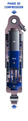 La suspension Fournalès est pneumatique : elle est constituée d’un volume de gaz (azote ou air) que l’on comprime. Ce ressort est donc à flexibilité variable.